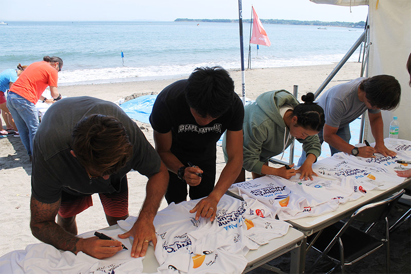 - 大会公式Tシャツにサインをする選手たち