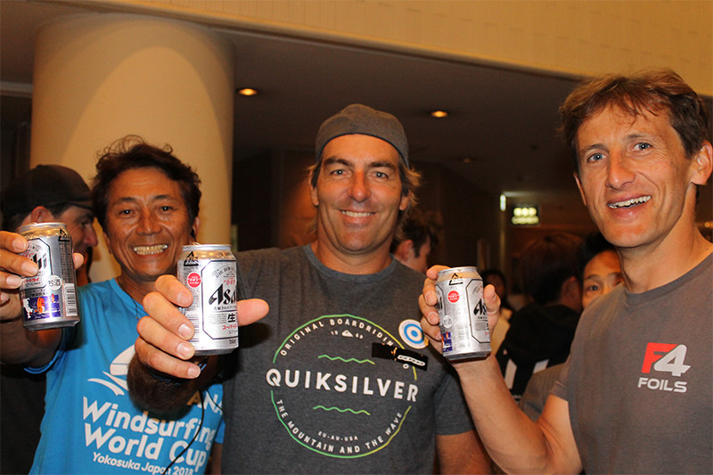 - ジミー・ディアス会長(プロフェッショナルウインドサーファーズ協会)と日本人選手のみなさん